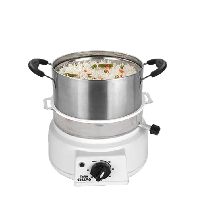 Because steaming allows boiling water to evaporate into steam, it is one of the healthiest methods of cooking. Vegetables, rice, soft dhokla, momos, eggs, idli, sweet corn, and chicken are some of the dishes you may cook with different attachments.